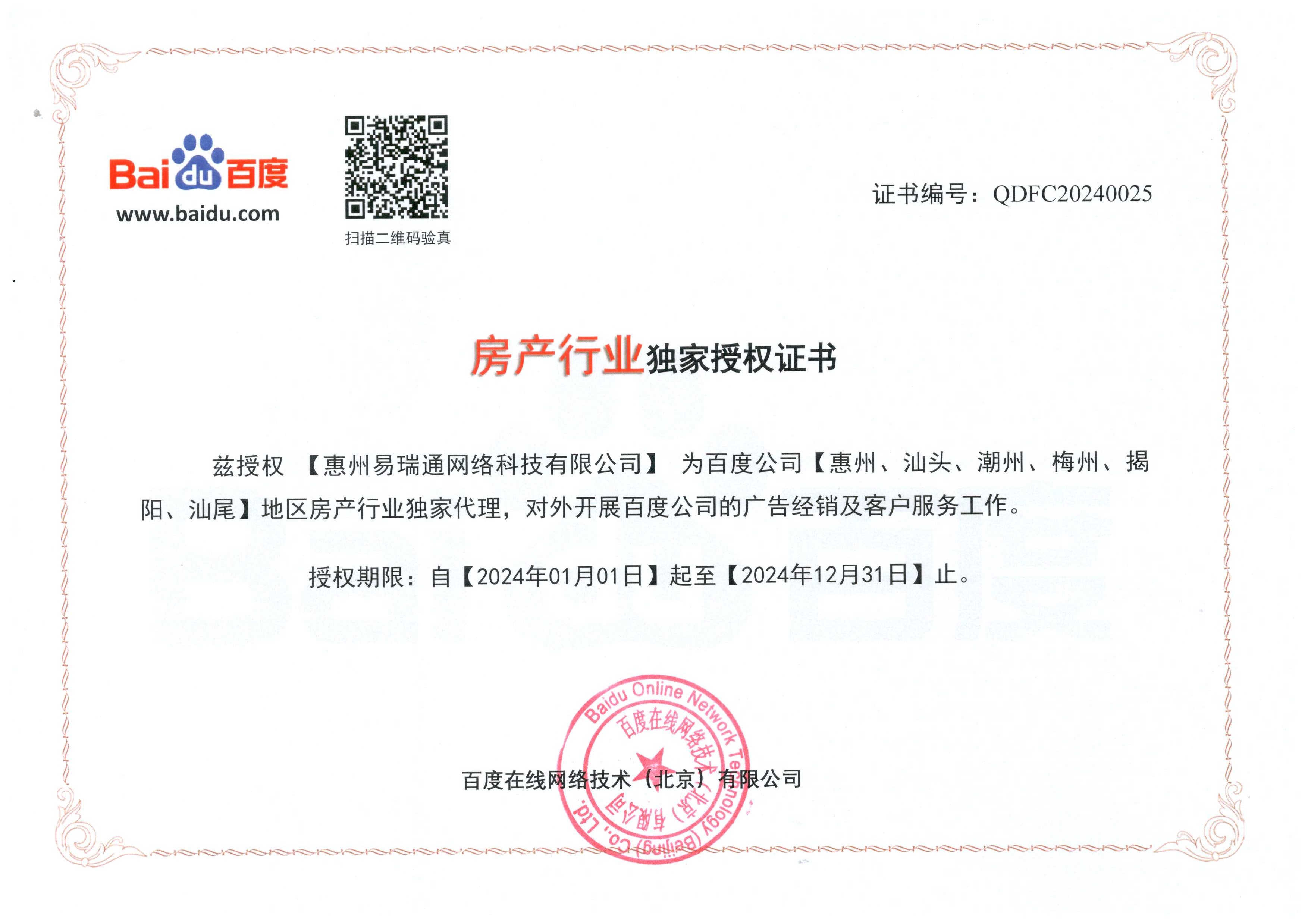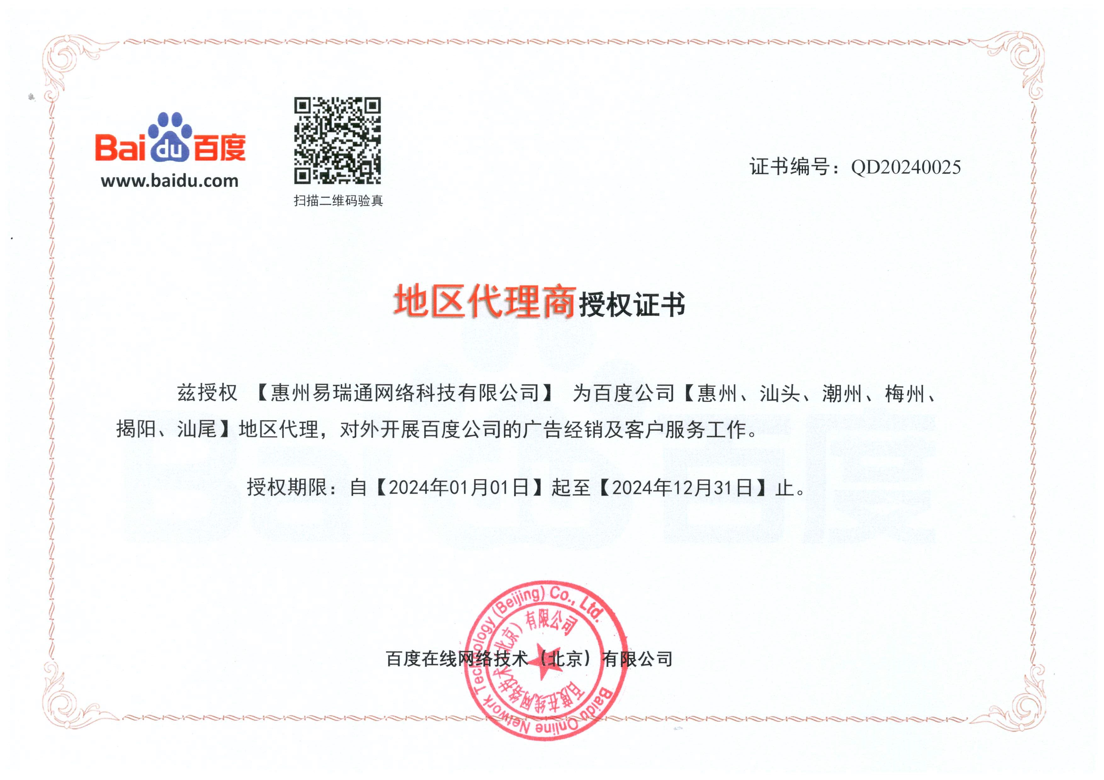 易瑞通作為百度粵東6大城市獨家代理(惠州|汕頭|潮州|梅州|揭陽|汕尾)