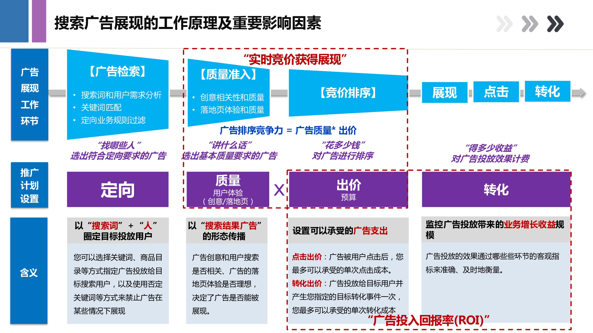 搜索推廣基于百度搜索引擎,用戶搜索關(guān)鍵詞,在百度搜索結(jié)果的顯著位置展示企業(yè)廣告信息,并幫助企業(yè)把用戶有效轉(zhuǎn)化為客戶的一種營銷方式。
